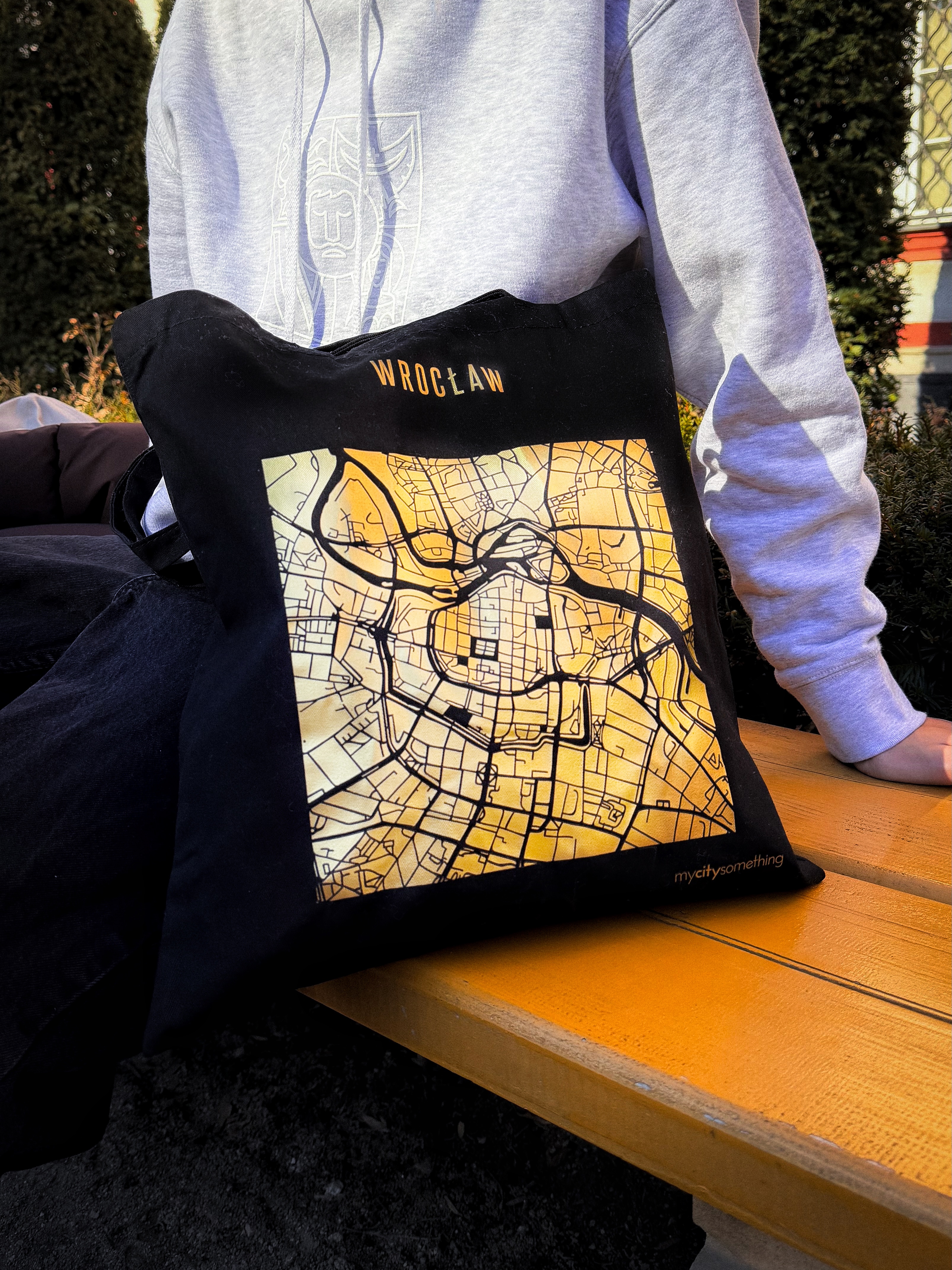 Torba ze złotym motywem złotej mapy Wrocławia to dodatek, który przyciąga uwagę, a jednocześnie świetnie sprawdza się w codziennym użytkowaniu. Złota grafika nadaje torbie charakteru, ale wciąż pozostaje na tyle uniwersalna, że łatwo dopasować ją do miejskich stylizacji.